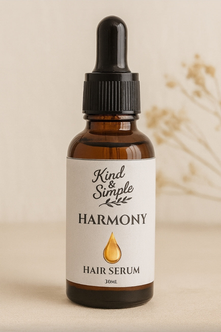 Bring your hair back to life with our Harmony Hair Serum, a nutrient-rich blend of natural oils designed to deeply nourish, smooth frizz, and enhance natural shine.